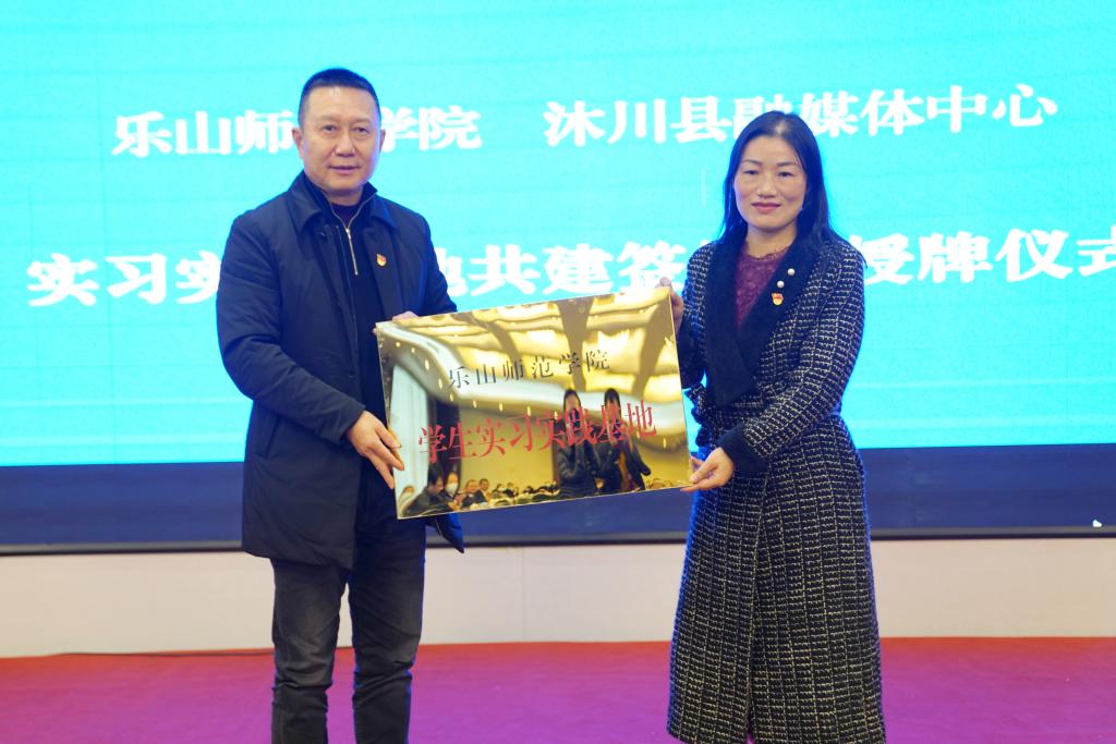 会议期间,双方还举行“乐山师范学院学生实习实践基地”授牌仪式,共同签署《沐川县融媒体中心 乐山师范学院文学与新闻学院大学生实习基地共建协议》,实地考察了牛郎坪茶叶现代农业园。