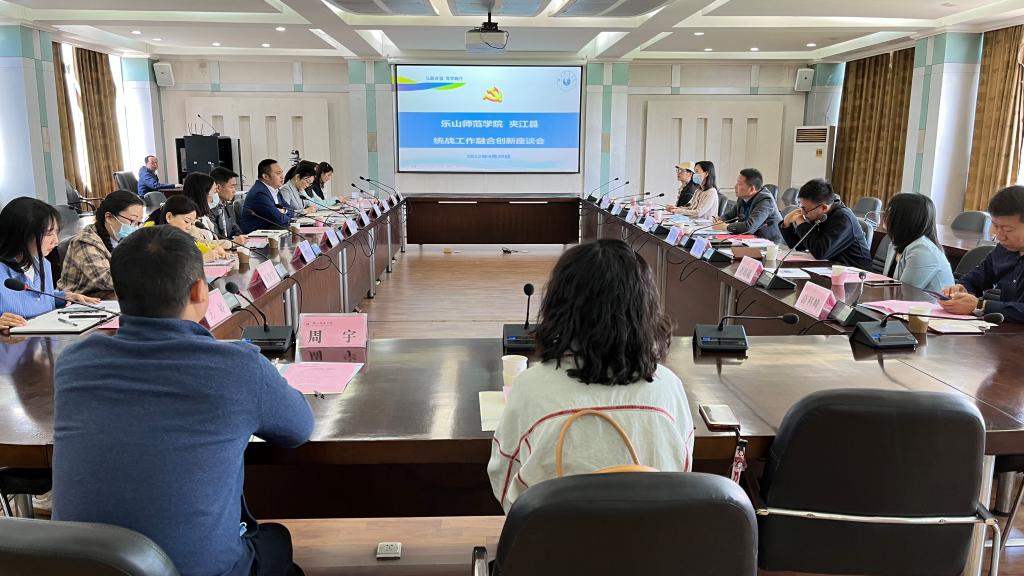 本网讯(文/周绍炳 、图/梁晨)4月20日上午,在我校弘毅楼第一会议室举行了县校统战融合研讨座谈会。学校党委统战部、旅游学院、美术与设计学院、音乐学院及民盟总支、民建支部、九三支社负责人出席会议。夹江县委常委、统战部部长伍文隆带领县委统战部、部分乡镇、民主党派负责人一行13人参加研讨座谈。会议由校党委常委、党委宣传部统战部部长佘万斌主持。