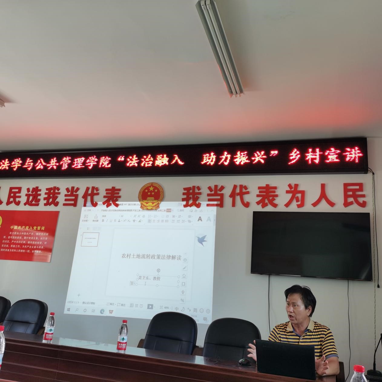 法学系教授龚卫东为张村干部群众作了“农村土地流转政策解读”,并就流转土地的权利归属、流转土地的置换、流转土地的入市等方面结合当前乡村土地问题实际进行了全面法律宣讲。本次活动契合“投身社会服务助力乡村振兴”的主题,紧紧围绕农村法治的热点问题进行普法宣传,紧扣乡村振兴的土地入市焦点,受到当地村民和干部群众一致好评。