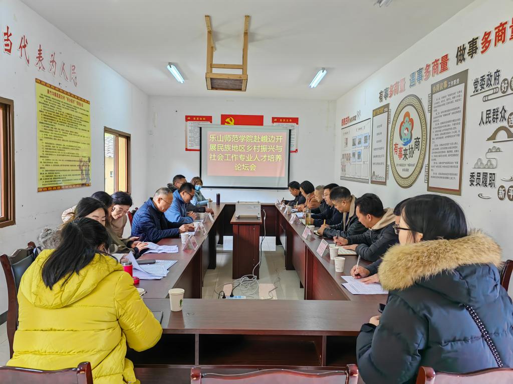 本网讯(文/丁木乃 图/罗佳、黄雪英)为了解民族地区对社会工作专业人才的需求,深化社会工作专业人才培养体系,2022年12月7日下午,由法管学院主办的“民族地区乡村振兴与社会工作专业人才培养”校地合作论坛在峨边彝族自治县底底古村村委会顺利举行。峨边彝族自治县人民政府、乡村振兴局、民政局、县委党史研究室等单位受邀参加,学院党委书记程勇、院长苏祥、全体社会工作专业教师等参加论坛。峨边彝族自治县人民政府副县长欧其月布主持论坛并致辞。