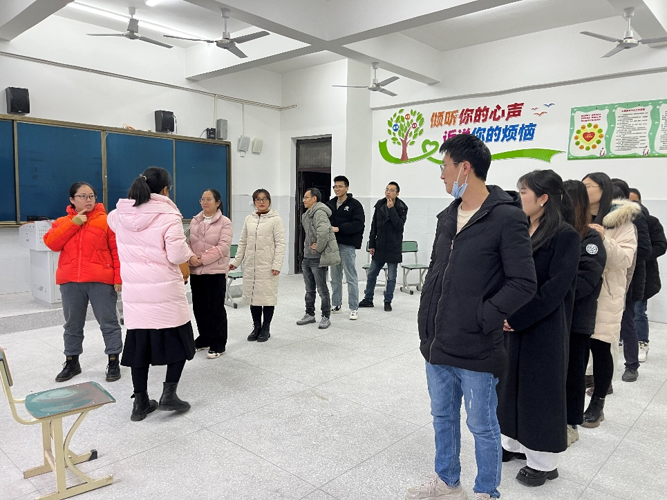 在开展学生心理健康的同时,由邓雪薇老师组织的主题为“沟通,让工作生活更精彩”高三班主任团辅活动也开展得热烈,班主任们积极参与,在富有挑战力的游戏中增进了彼此感情的纽带,通过游戏更好的理解团队合作和班级管理。