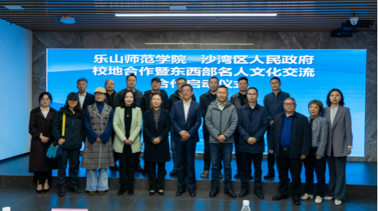 3月13日,乐山师范学院与沙湾区人民政府校地合作暨东西部名人文化交流合作启动仪式在沫若书法艺术馆举行。乐山师范学院党委书记胡丹,乐山师范学院党委副书记、工会主席陈立志,美术与设计学院书记杨红、院长熊泽文、副院长熊火花、沙湾区委副书记、区长汪秀丽以及美术与设计学院七位参展教师出席启动仪式。区委常委、宣传部部长周强主持启动仪式。