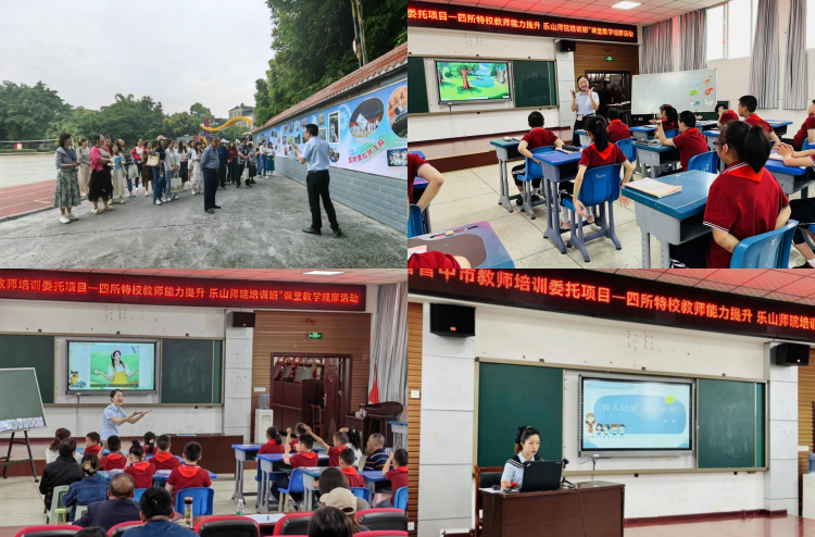 在乐山市特殊教育学校,学员们在学校党委书记吴用和校长周成燕的带领下,参观了校园文化墙、学生公寓楼、教学楼、资源中心等,吴用为学员们介绍了学校的发展历史、办学理念、办学目标、课程设置以及师资队伍建设等情况。参观完校园后,该校的叶俊和杨亭老师分别为学员们带来了《我是小裁判》《0的加减》两堂观摩课,为大家展示了如何在课堂教学过程中将生活与学科知识深入融合。最后,该校教师廖颖为大家做了《育人以爱、启心启智》的专题讲座,为学员们分享了很多宝贵的班级管理、家校沟通的经验。