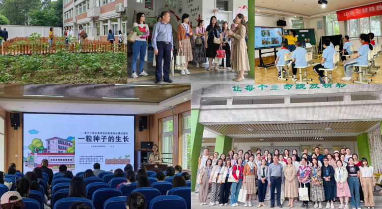 观摩交流共成长。根据培训安排,学员们先后前往成都市大邑县特殊教育学校、乐山市特殊教育学校、乐山师范学院特殊需要儿童教育康复中心进行现场沉浸式观摩学习。在大邑县特殊教育学校,学员们在校长刘莎的带领下,参观了大邑县特殊教育学校的校史馆、种植园、绘本馆、文化长廊等,刘莎为大家介绍了该校以菩提树果子为切入点开发的特色校本课程、以促进特殊儿童身心发展为目标的学前融合教育课程、以就业为出发点的职业技能课程等的设置及实施情况。参观完教学楼后,该校教师李雅丽、凌洁、谢清丽分别为学员们展示了生活适应课《乘公交车-上车后》、康复小组课(感统训练)、康复个训课《p的发音》,为学员们带来了不一样的课堂体验。最后,刘莎为学员们主讲了《一粒种子的生长——基于个体发展需求的教康结合课程建构》的专题讲座,她提到课程是学校发展过程中的关键环节,优质的课程开发与建构将会为特殊儿童的发展带来意想不到的惊喜,更能发现每个特殊儿童的闪光点。