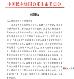 本网讯(文、图/李可)2023年5月31日,民建中央十二届中央企业委员会第一次全体会议在乐山翰文大酒店隆重召开。来自全国28个省、自治区、直辖市的87名民建全国知名企业家参加了会议。会上还签署了“建乐合作”协议,助力地方经济发展,此次会议取得了圆满成功。6月20日,民建乐山市委发来感谢信,对学院、特别是杨小川副院长对本次活动的支持和辛勤付出表示感谢!
