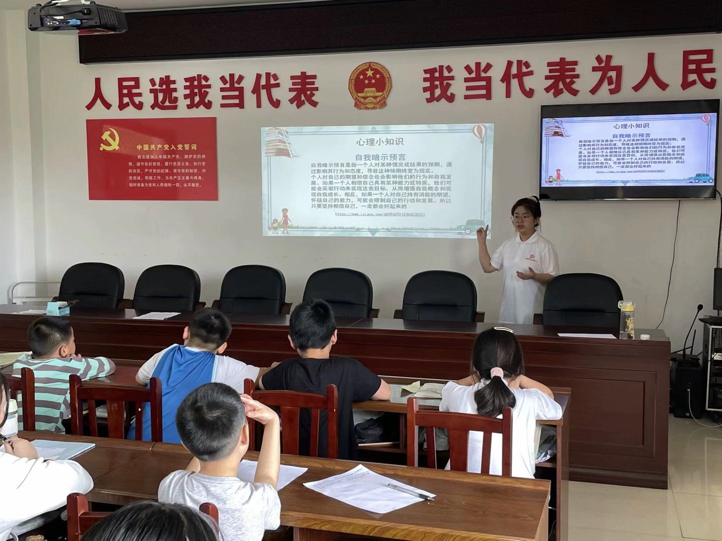 随后,志愿者开展了“心理健康教育—认识你自己”的活动。在活动中,小朋友们以开火车的方式轮流讲出下一位小朋友的优点。这既让小朋友们对自己的优点有了一定了解,树立了自信心,又锻炼了普通话表达能力。
