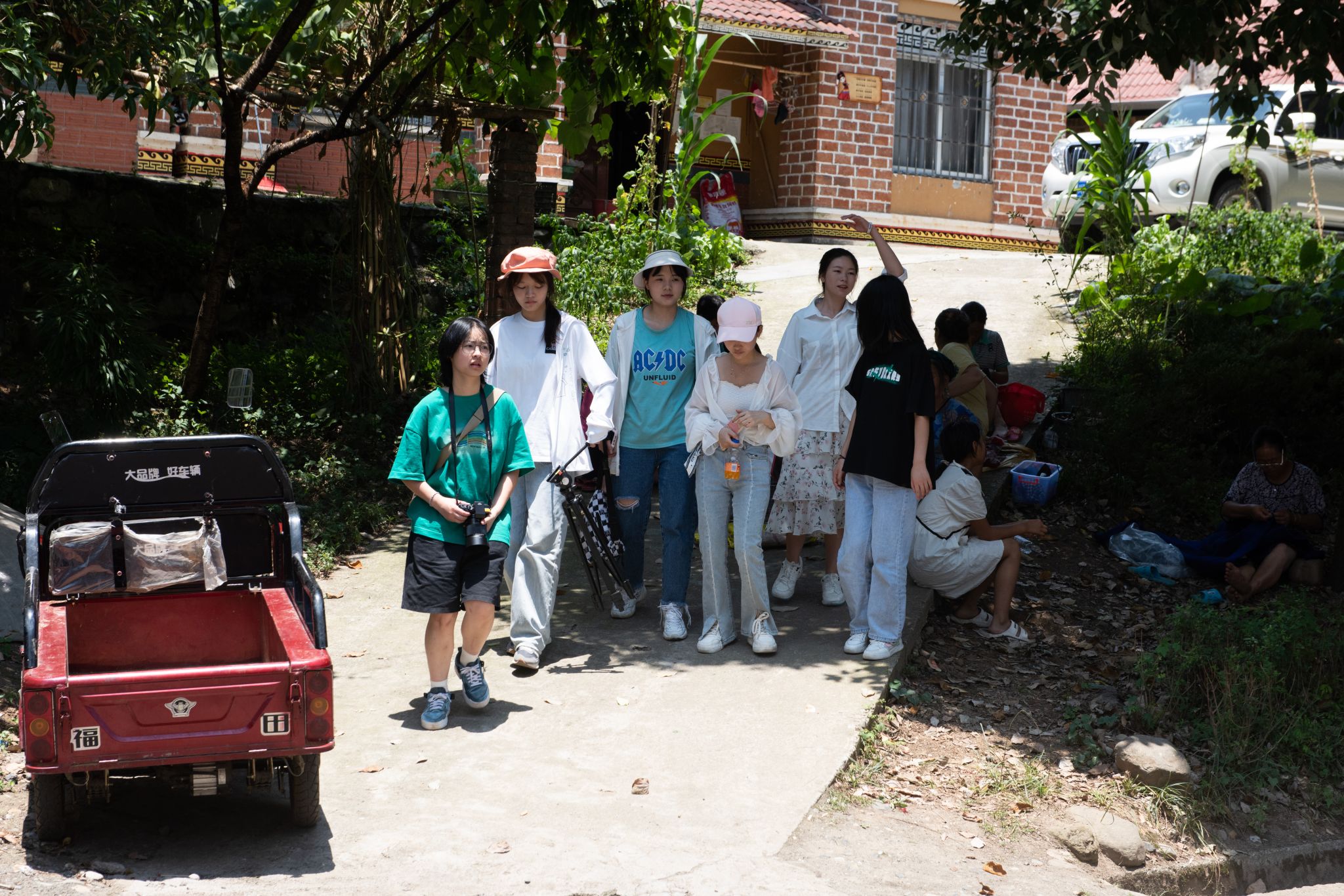 团队成员向当地有直播意愿的居民讲解后去往下一家的场景。