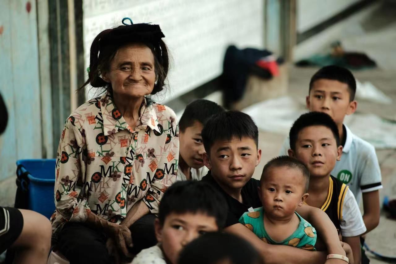 团队彝族女孩同不会说普通话的阿婆进行交流了解情况。