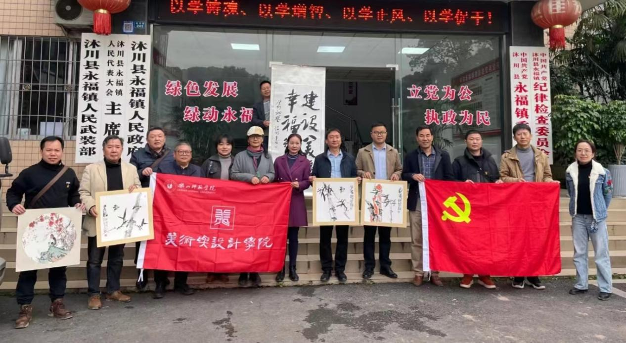 本网讯(文/吴胜景、图/刘建刚)2023年11月17日,美术与设计学院美术书法教工党支部部分党员在学院党委书记王孝琴、支部书记吴胜景带领下,驱车来到沐川县永福镇张村村开展基层党组织共建、支部主题党日活动。
