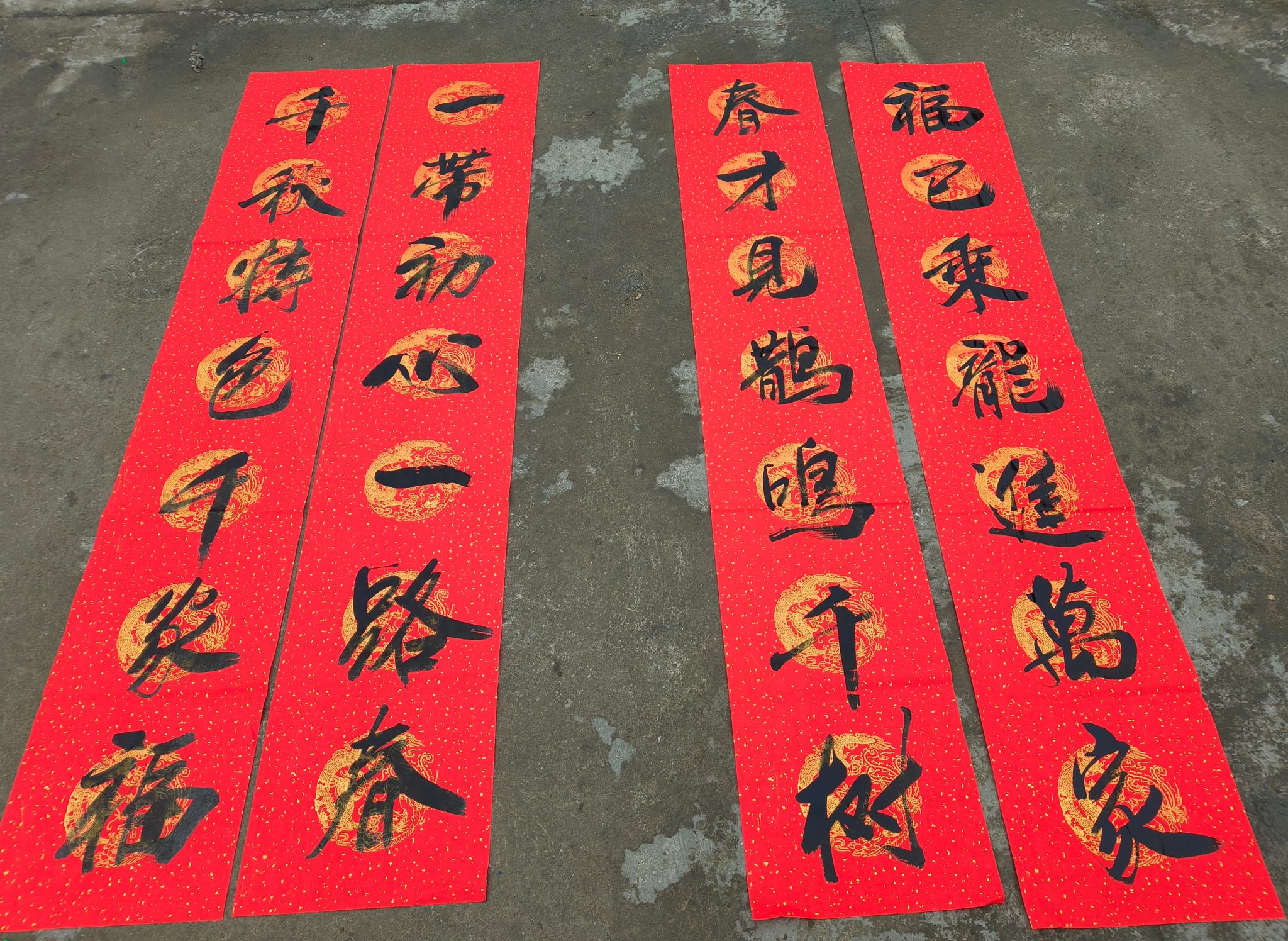 据统计,老师们共为村民写春联300余副,活动当天送出春联100余幅。