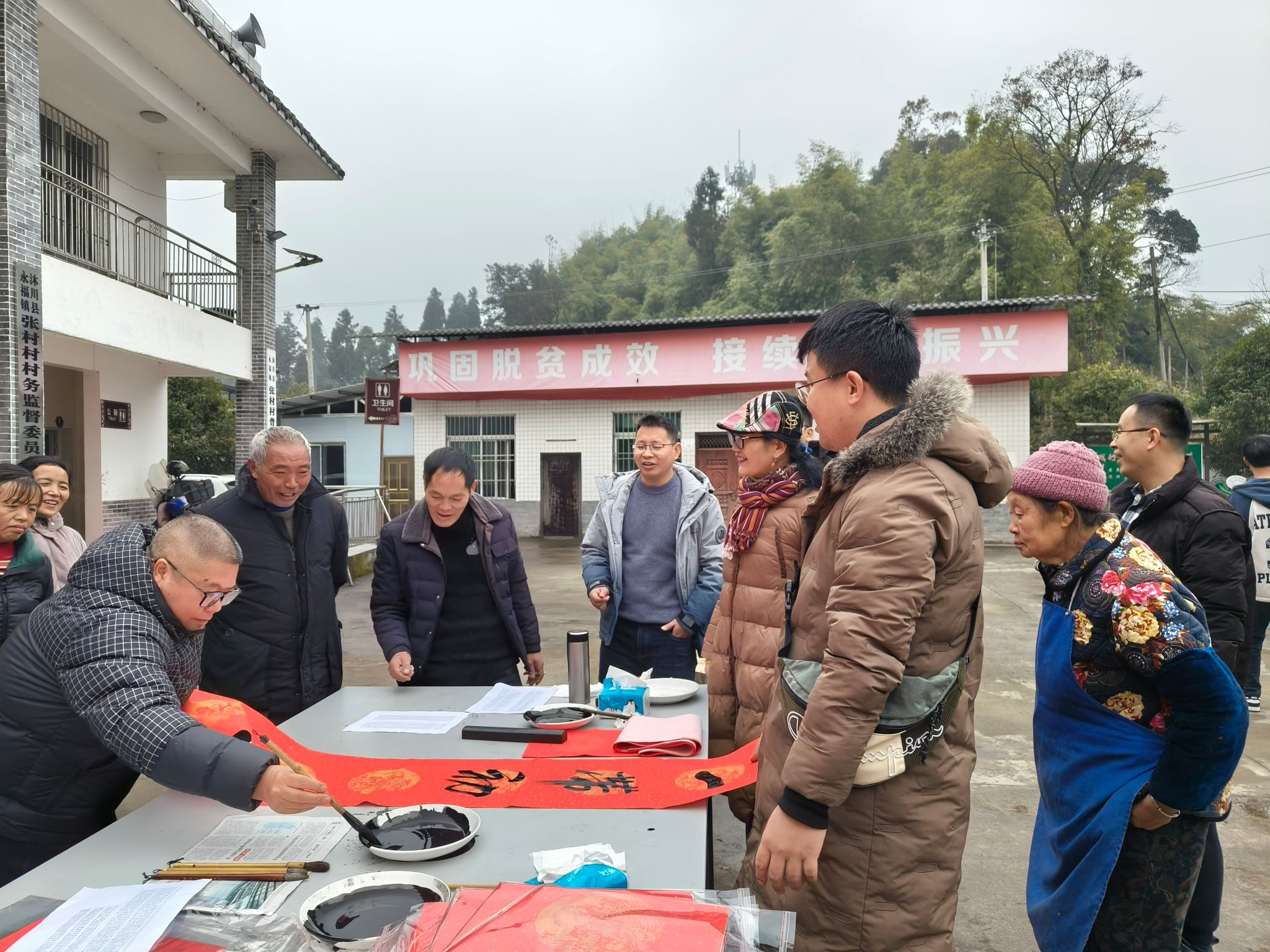 本网讯(文/武涛、资飞 图/王孝琴)春节将至,为进一步弘扬中华传统文化,助力乡村文化振兴,营造欢乐祥和的节日氛围,1月5日,美术与设计学院赴永福镇张村村开展“挥毫泼墨送春联,龙飞凤舞迎新春”活动,组织书法教研室教师为村民写春联,送祝福。学院党委书记王孝琴、院长熊火花以及书法教研室全体教师参加了此次活动。
