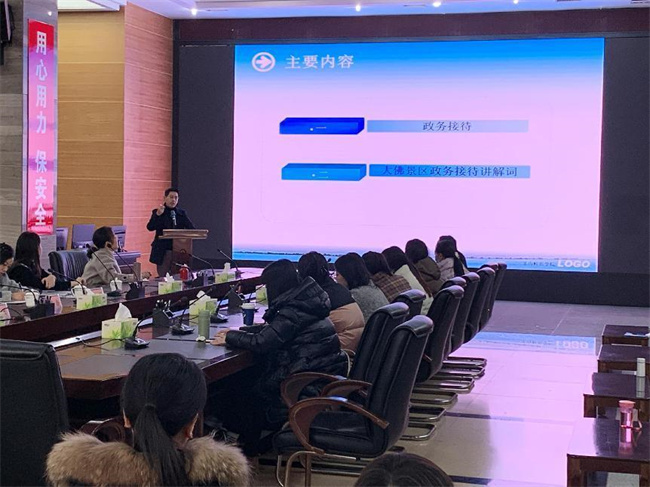 本网讯(文、图/刘延超)为加强校企合作,提升景区政务接待讲解员能力,应乐山大佛景区管委会之邀,1月17日,旅游与地理科学学院副教授、博士刘延超老师和省优秀导游、省金牌讲解员、省优秀研学旅行指导师吴薇老师为乐山大佛景区开展了一次关于景区政务接待讲解能力提升的专题培训。乐山大佛景区50名优秀讲解员参与了此次培训。