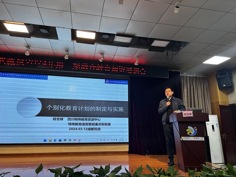 本网讯(文/李琳图/李琳)3月12日,省特殊教育资源中心执行主任、特殊教育语言智能重点实验室专职副主任段玄锋,特教学院专任教师李琳博士赴双流开展特殊教育巡回指导,并参加成都市双流区2024年第一期融合教育师资培训会。双流区教育局信息科科长袁源、成都市王玲名师工作室全体成员、双流区特殊教育资源中心巡回指导教师、各中小学及幼儿园的资源教师、特殊教育学校教师共计130余人次参加本次培训。