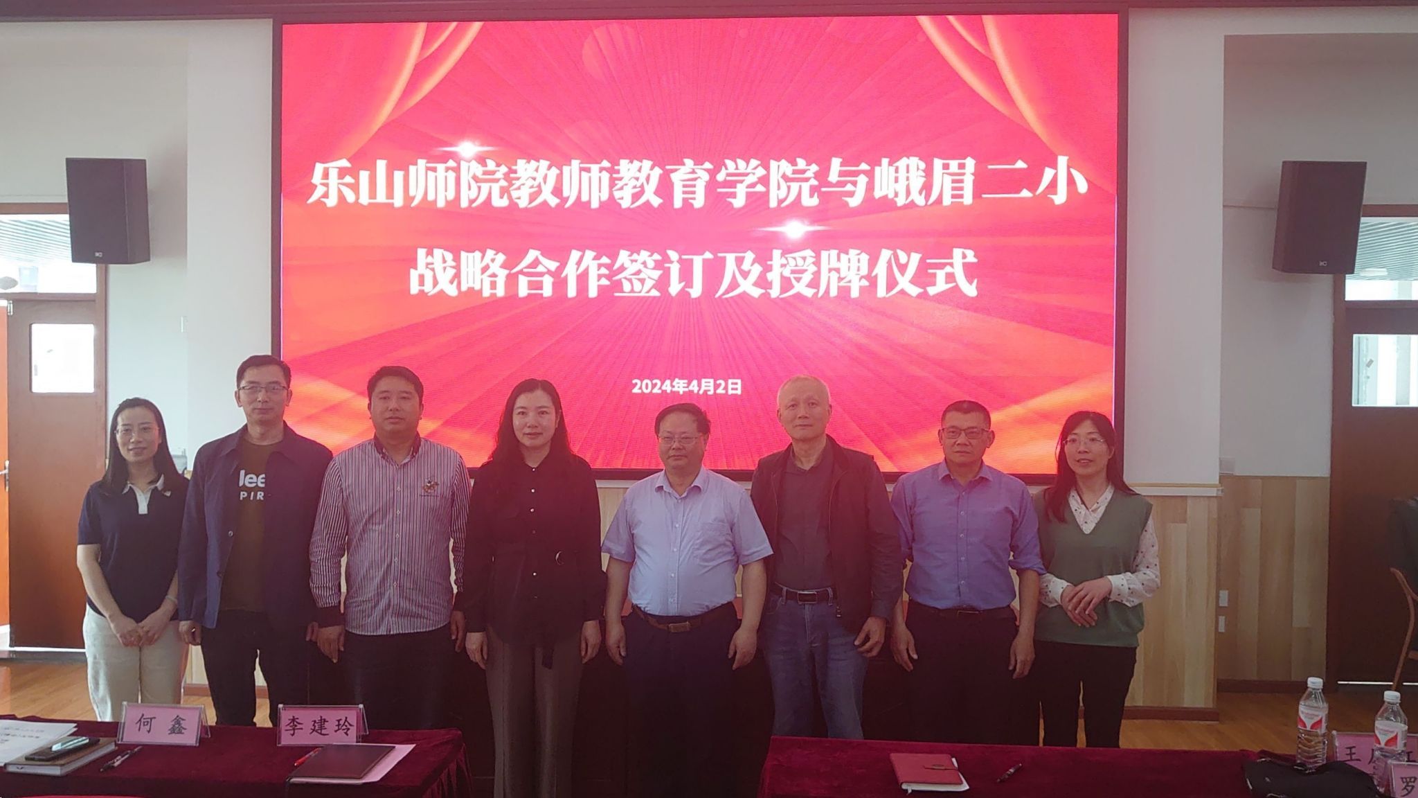 本网讯(文、图/章含颖)2024年4月2日,我校与峨眉山市第二小学校举行教授(博士)工作室、实践教育基地签约与授牌仪式。教师教育学院院长罗明礼、学科教学论教研室主任关北光、化学学科教学论教授王应红、师范生职业能力中心主任杨小丽以及峨眉山市第二小学校总支书记李建玲、校长何鑫、副校长曹永超等人参加了此次签约授牌仪式。