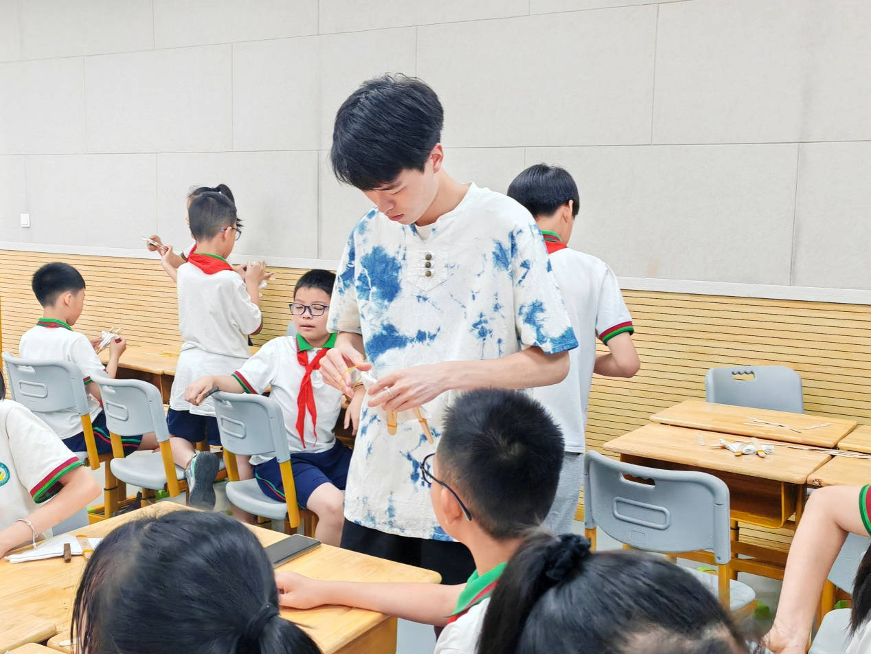 我校非遗美育名师工作室成立以来,开展了一系列文化传播活动,到乐山市大中小学讲授特色课程,开展非遗体验,让传统文化在校园中“落地生根”,切实履行了服务地方、传承文化的职能。工作室学生在活动中担任助教,参与组织、辅导和场地布置等工作,培养了服务意识、服务能力和专业技能。