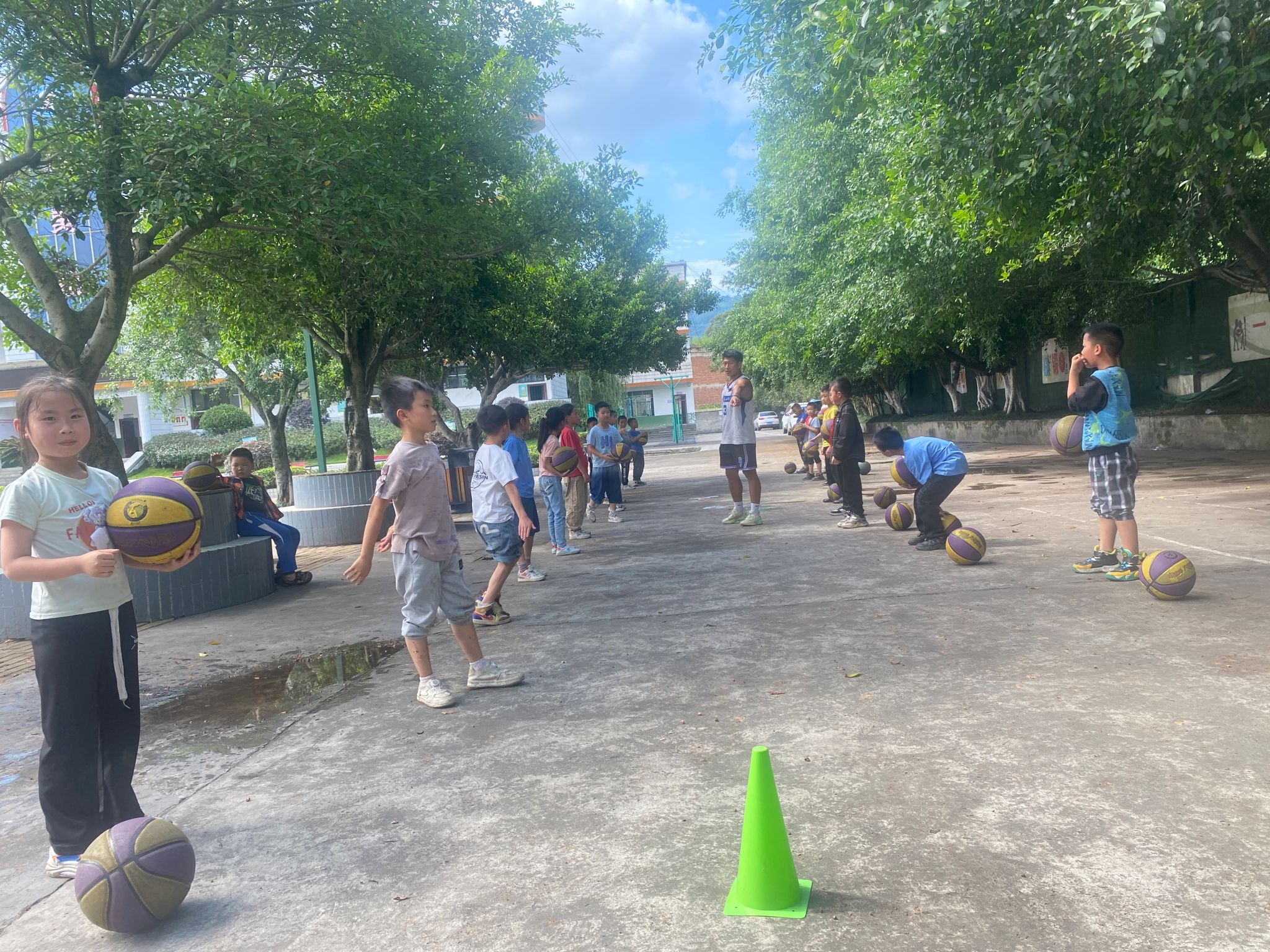 2024年4月17日,我来到了宜宾市珙县沐滩镇中心小学。这里的篮球氛围是我完全没有想到的,虽然课间休息只有10分钟,但你总能看到篮球场上有许多小朋友打球,无论是大热天还是在落雨,从他们身上我看到的是篮球带给他们的快乐,也看到他们对篮球学习的热情。
