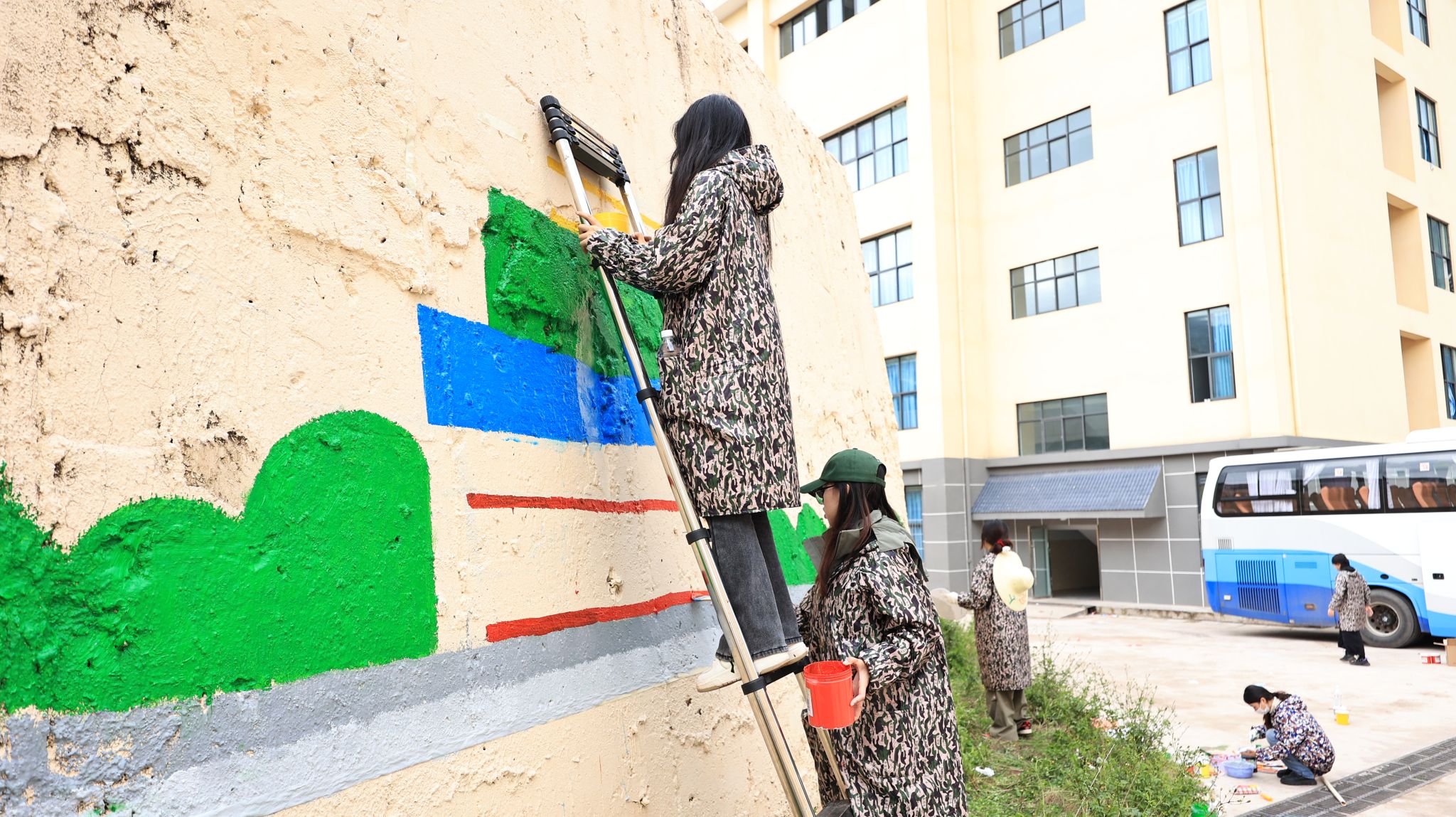 在美姑大桥初级中学,在周允老师指导下,同学们创作墙绘,以墙壁为画纸,以热情为颜料,经过同学们的精心创作,原本简单枯燥的墙面变得五彩缤纷、生动活泼,成为一道道的亮丽的风景线。