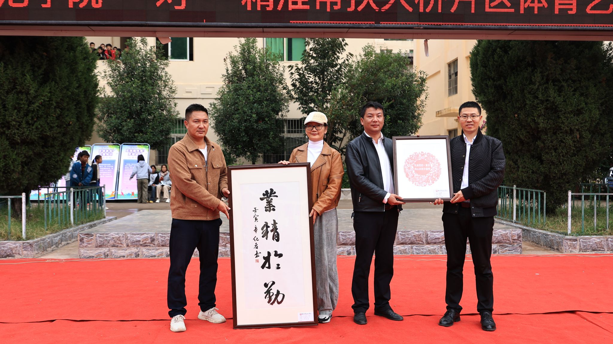 在体育艺术节开幕式上,学院还向大桥中学、俄洛依甘小学捐赠了由我校大学生精心创作的30幅书法、剪纸作品,为美化校园、建设乡村校园文化艺术增添光彩。