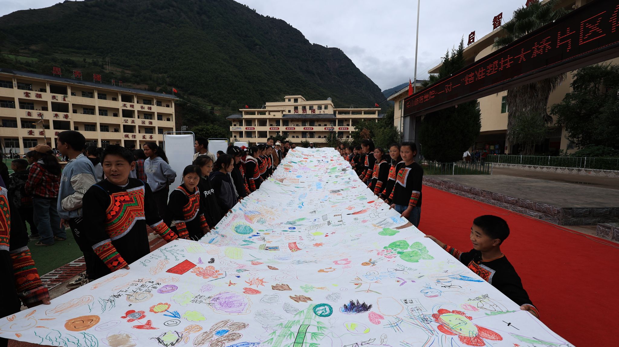 (本网讯文/伍金威 图/龙海清)为了使高校青年志愿者融入到乡村振兴的伟大事业,同时促进高校美育进乡村校园,10月12日至14日,美术与设计学院师生45人,到凉山州美姑县开展“一对一”精准帮扶活动,并参加学校组织的精准帮扶大桥片区体育艺术节。学院院长熊火花、副书记赵元、油画教研室主任周允、辅导员任自林、伍金威带领40名美术学专业学生参加了此次活动。