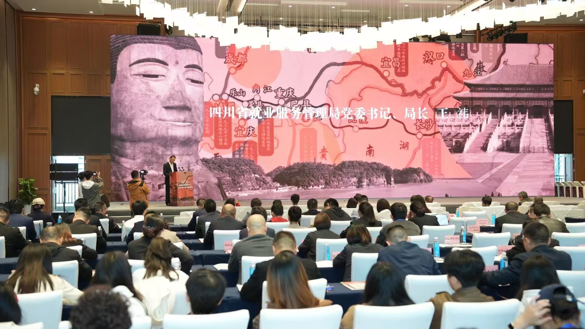 大会在精彩的峨眉武术表演热场后正式拉开序幕,由乐山市委常委、副市长王彦和四川省就业服务管理局局长王祎进行分别致辞,他们表示对参会嘉宾人员的热烈欢迎,也对之后的文创项目合作落地提出期许。