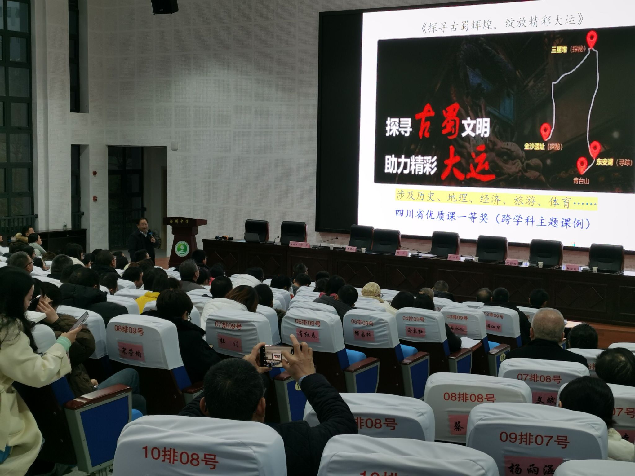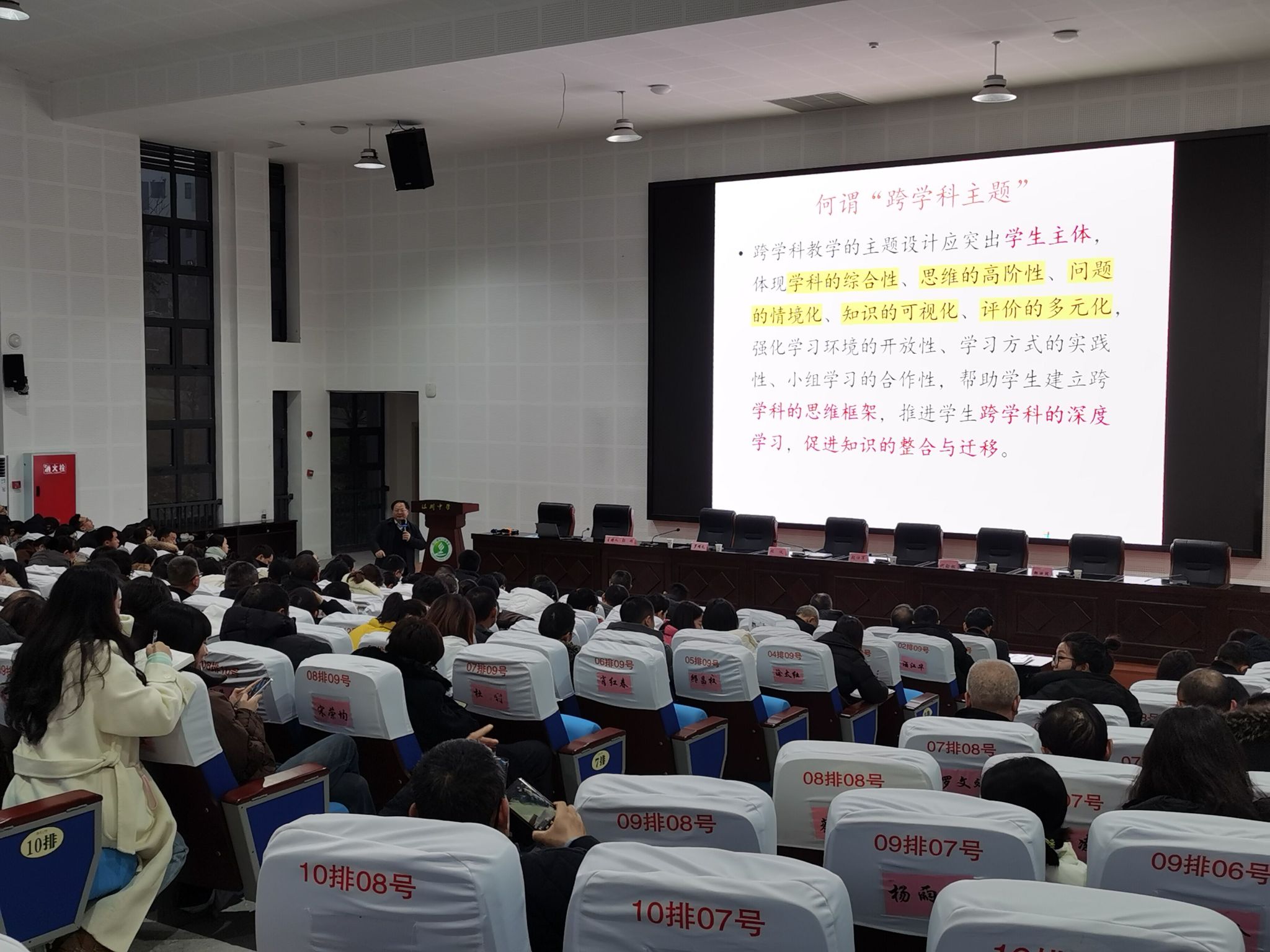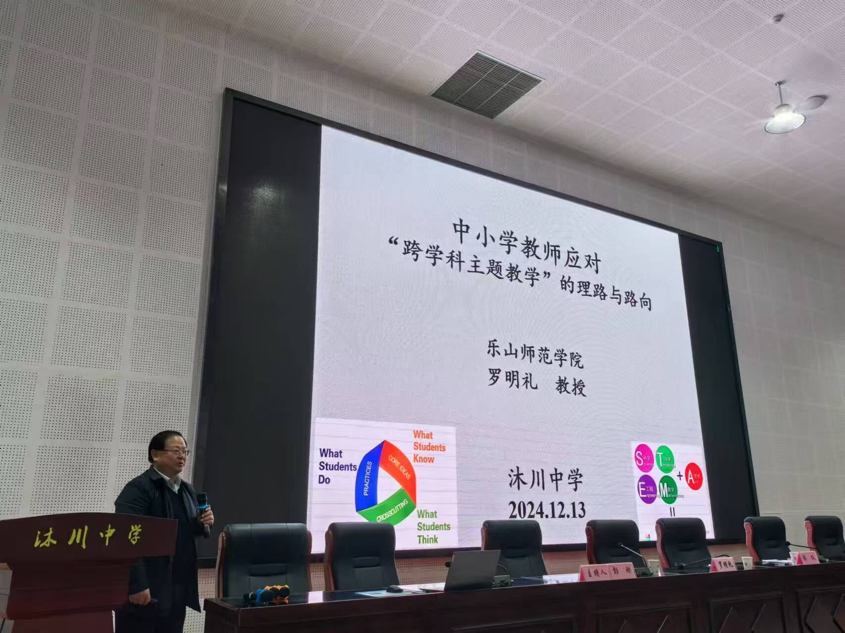 本网讯(文 张海连 /图 沐川中学)2024年12月13日下午,学校教师发展中心、教师教育学院、地合处与沐川中学联合开展学术交流活动。教师教育学院院长罗明礼教授应托管帮扶学校沐川中学的邀请,为全体教师作了一场题为《中小学教师应对“跨学科主题教学”的理路与路向》的学术讲座。本次讲座在沐川中学凌志楼大礼堂举行,近200名一线教师及学校管理层聆听了报告。外国语学院刘丽平教授、数理学院的杨建辉副教授、材化学院的张海连副教授、李璐杉老师,以及在沐川中学参与托管帮扶工作的王应红教授、蒋方舟老师参加了此次活动。