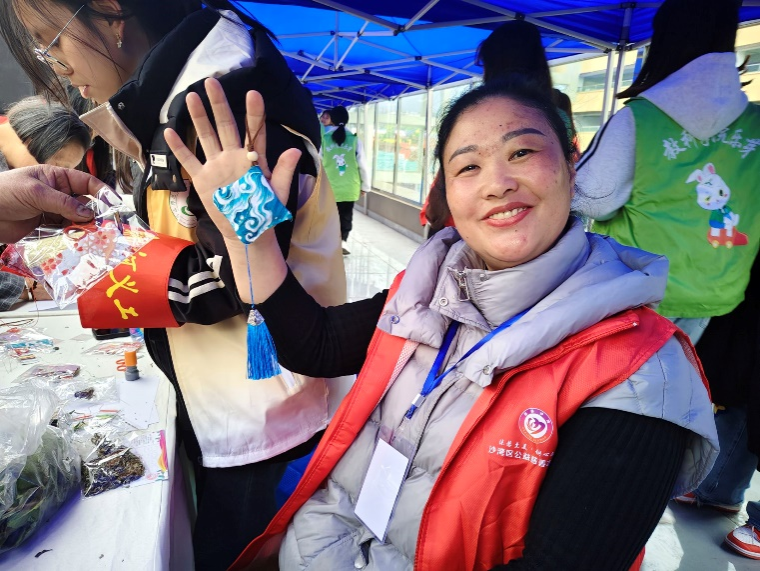 活动中,乐芽织心志愿服务队进行了风采展示,将人们生活中再平常不过的音乐和运动转化为抚慰心灵的独特“药方”,带领现场观众开启身心疗愈,一起体验腹式呼吸放松以及睡个好觉心灵健康操,同时现场的“节气流转润心田,五感共生启新章”心理嘉年华,为社区居民、街道工作人员、网格员、沙湾区骨干志愿者以及快递外卖人员等约500名参与者带来一场沉浸式心理体验盛会。