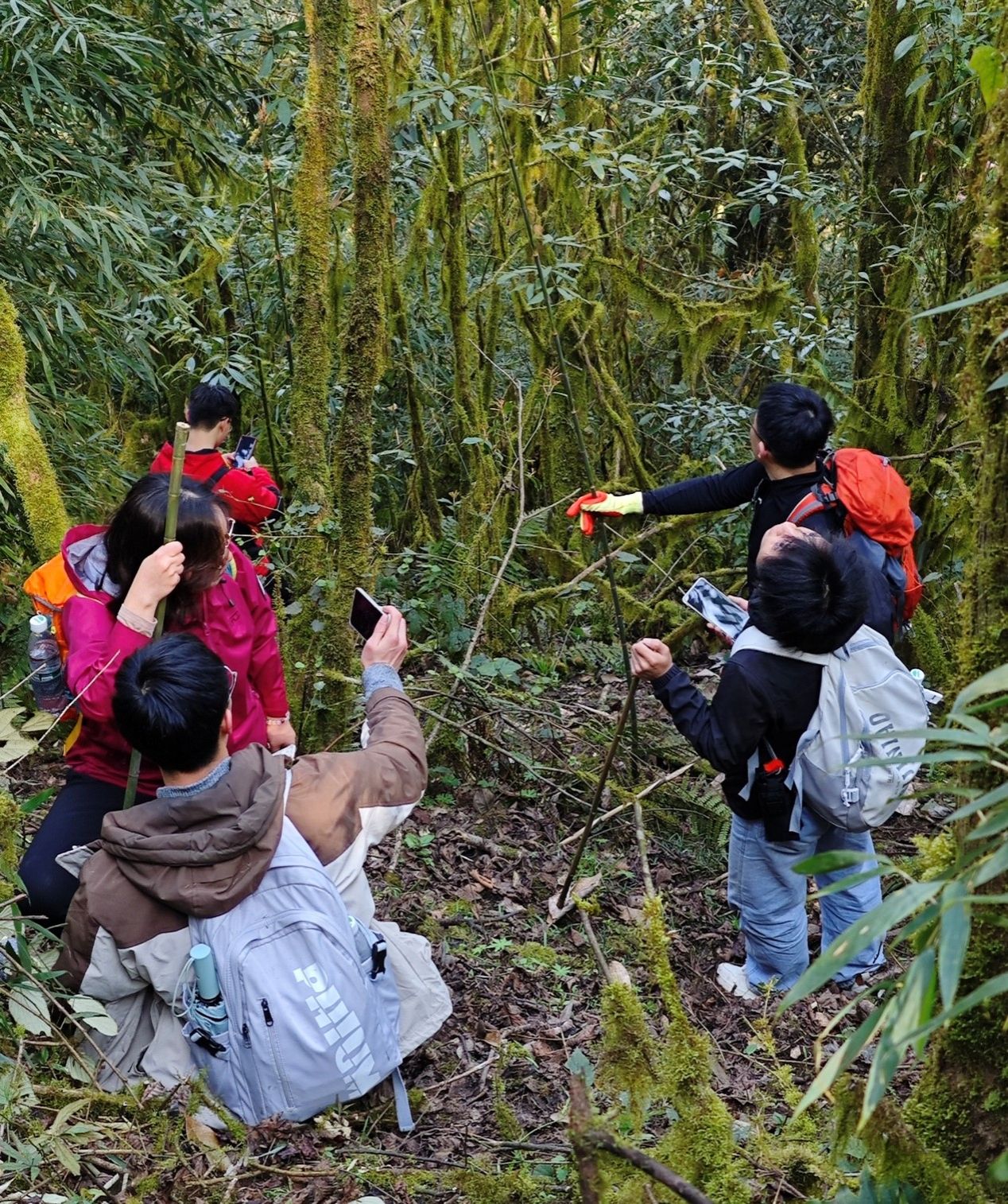 本网讯(文/王智勇,图/李洪洋、向博文)为了让学生了解行业一线动态,培养其综合实践能力,同时践行生命科学学院科技服务地方的使命,2025年4月1日至3日,学院教师王智勇和刘晓捷带领6名学生前往大熊猫国家公园眉山片区,与当地护林员携手,共同开展了线路巡护工作,对线路中的珍贵野生动植物开展了调查和记录。