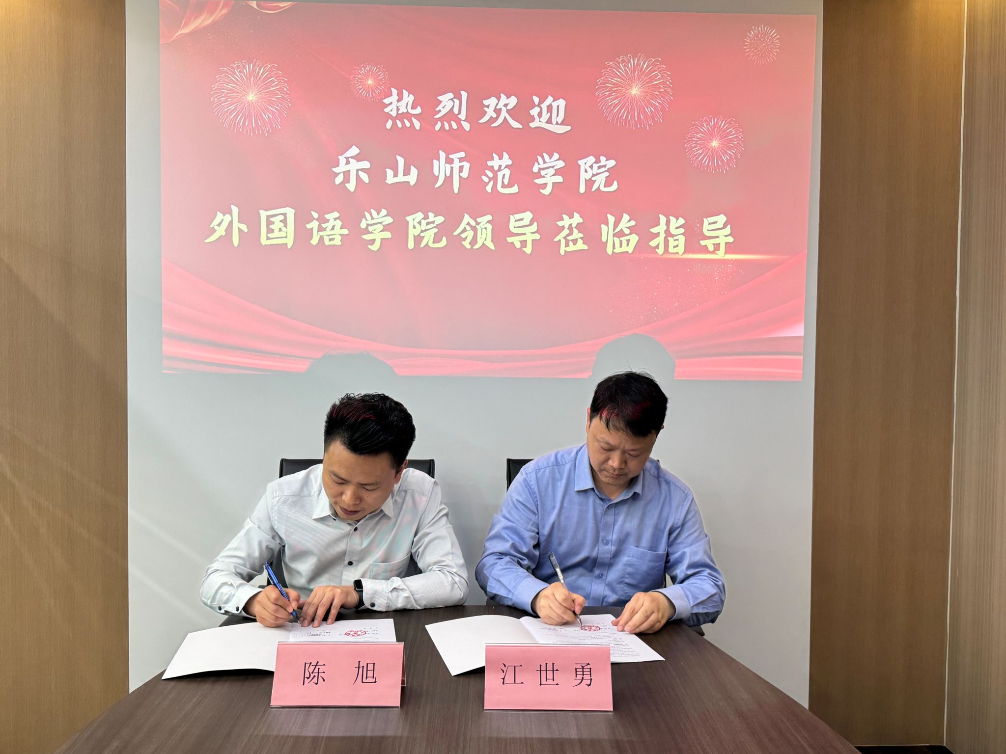 在北京慧澜国际文化传播有限公司,成都营销中心负责人陈旭详细介绍了企业在翻译服务、人工智能数据服务、文化出版及职业教育国际化等领域的多元布局。作为拥有10年以上行业经验的国际化语言服务提供商,慧澜国际在全球8个国家设立海外交付中心,业务覆盖笔译口译、数据标注、影视译制、海外出版等全链条服务。双方围绕“翻译服务赋能教师科研”“校企协同申硕资源共建”等议题展开座谈。江世勇表示,希望借助企业在多语种翻译、跨境文化传播及人工智能数据服务领域的资源优势,为学院教师科研项目、翻译硕士点申报提供实践支撑与技术赋能,同时推动“翻译+技术”“翻译+文化”的复合型人才培养模式创新。外国语学院与北京慧澜国际文化传播有限公司签署了产教融合实践基地合作协议,双方将在实习实训、语言服务、学科建设等多领域展开深度合作。