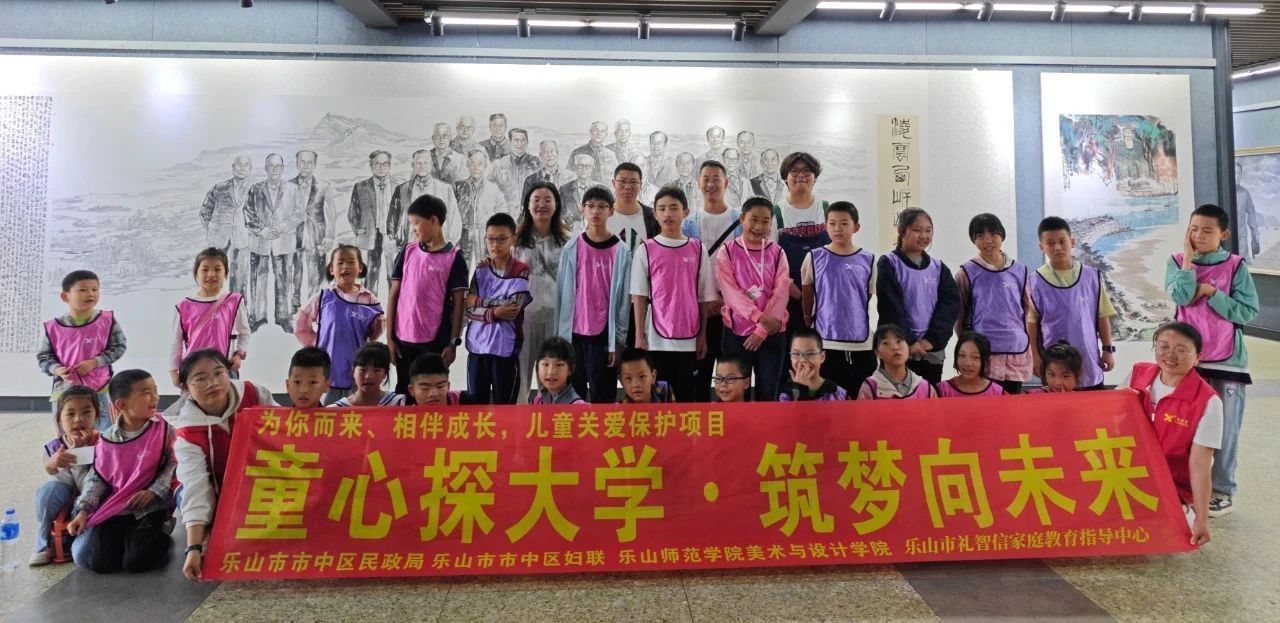 本网讯(文/任自林 图/龙海清),为深入贯彻党的二十大精神与习近平总书记关于少年儿童的重要论述,乐山师范学院美术与设计学院、乐山市市中区民政局、市中区妇联、乐山市礼智信家庭教育指导中心,共同策划的“童心探大学·筑梦向未来”关爱困境儿童公益活动于6月1日上午在乐山师范学院开展。此次活动有32名困境儿童参加,其中包括3名特殊儿童,以身心健康成长为核心,聚焦培养其心理韧性、塑造健全人格、树立积极价值观、增强社会融入能力,致力于为困境儿童打造一个充满关爱、支持与希望的成长环境,将政策关怀转化为切实行动。