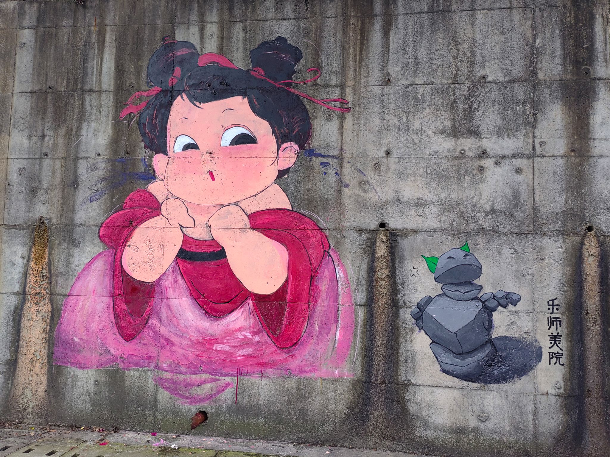 5月初,乐山师范学院与沙湾区达成合作意向,启动生态大道美化项目,由学校校地合作处牵头,美术与设计学院具体落实,精心选派美术学专业的30余名师生组成创作团队,进驻生态大道沿线开展主题墙绘创作。