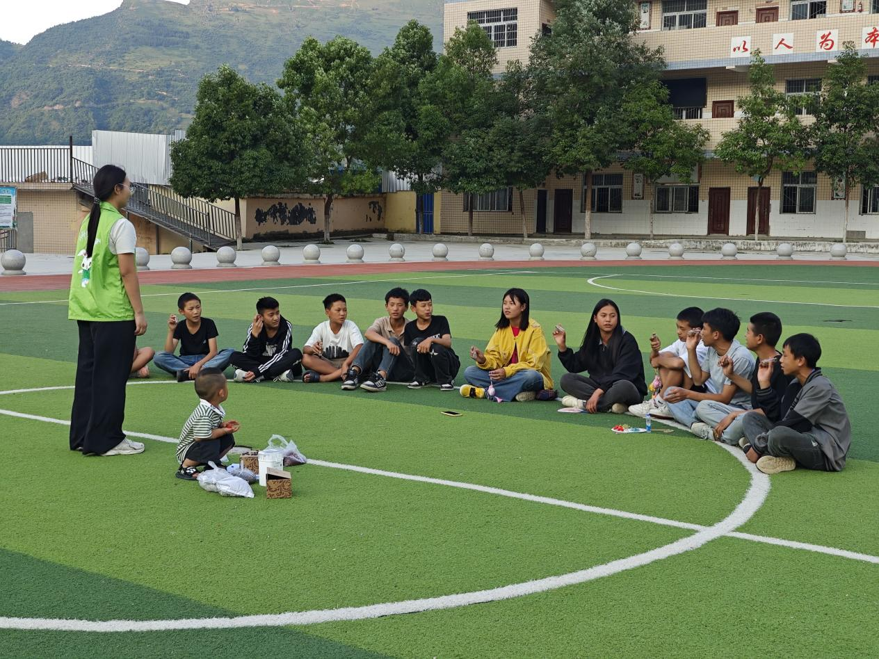 本次活动也是将前期成果带到民族地区推广实践,中心的专兼职老师们带领乐芽织心学生志愿者团队,引导孩子们探索索玛花、竹子等植物在彝族文化中的深厚象征意义,建立自然与心灵的和谐联结。在精心设计的“花瓣情绪释放”环节,孩子们将心事寄语系于花瓣,随风飘散,象征着烦恼的释然;“叶片声形绘画”活动中,孩子们聆听叶片婆娑,将内在情绪转化为色彩与线条,学习表达与自我调适,这正是“掌心的森林”感官唤醒疗愈理念的生动延伸。