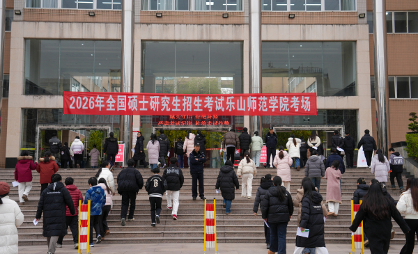 为落实2026年研考强化制度约束、严守考试公平的工作要求,学校扎实推进全流程筹备工作。考前专门召开工作协调会,系统梳理考试各环节任务;严格执行考务人员“线上+线下”双培训与考核上岗制度,针对入场安检、试卷流转、应急处置等关键环节开展实地演练,确保全体工作人员熟练掌握考试规程、精准落实操作要求。考试期间,校党委副书记、校长李方裕深入考务办公室、指挥中心及各标准化考场,巡视指导考试工作。乐山市副市长廖沂在校党委副书记、纪委书记彭尚源陪同下,实地检查了考前各项准备与组织实施情况。党委常委、副校长农向参加考试期间巡视督导。