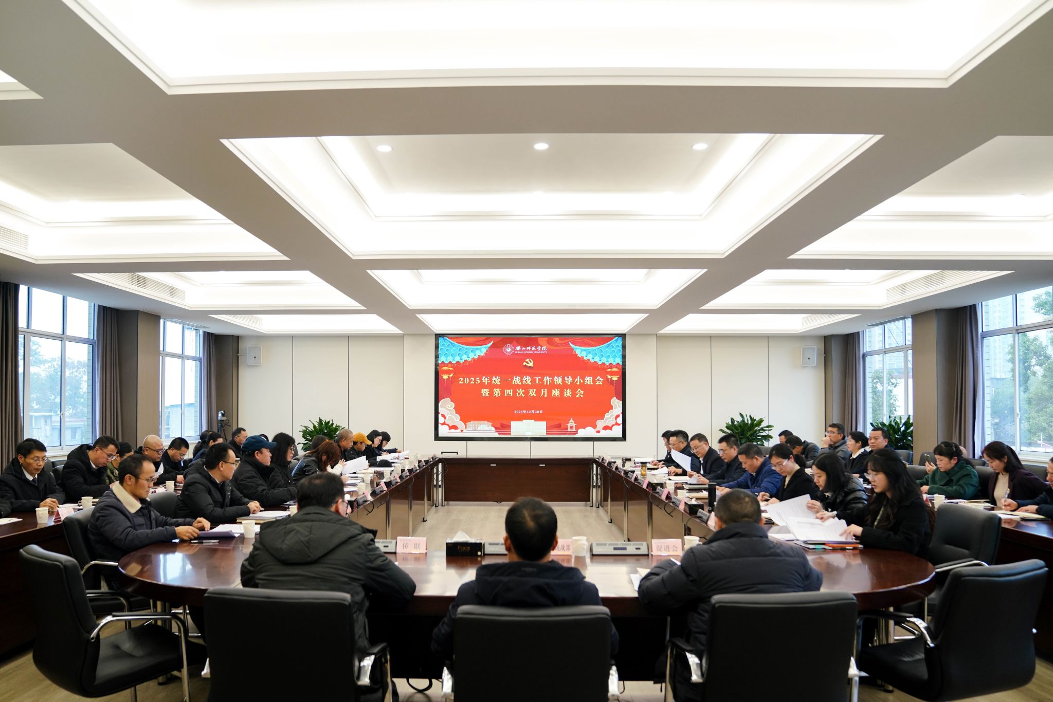 本网讯(文图/曾仁丽)12月30日,我校在弘毅楼第一会议室召开2025年统一战线工作领导小组会暨第四次双月座谈会。党委书记刘进,党委副书记、校长李方裕,党委副书记陈一君出席会议。统一战线领导小组成员单位负责人、各二级党组织书记、各民主党派和统战团体负责人、政协委员等参加会议。会议由陈一君主持。