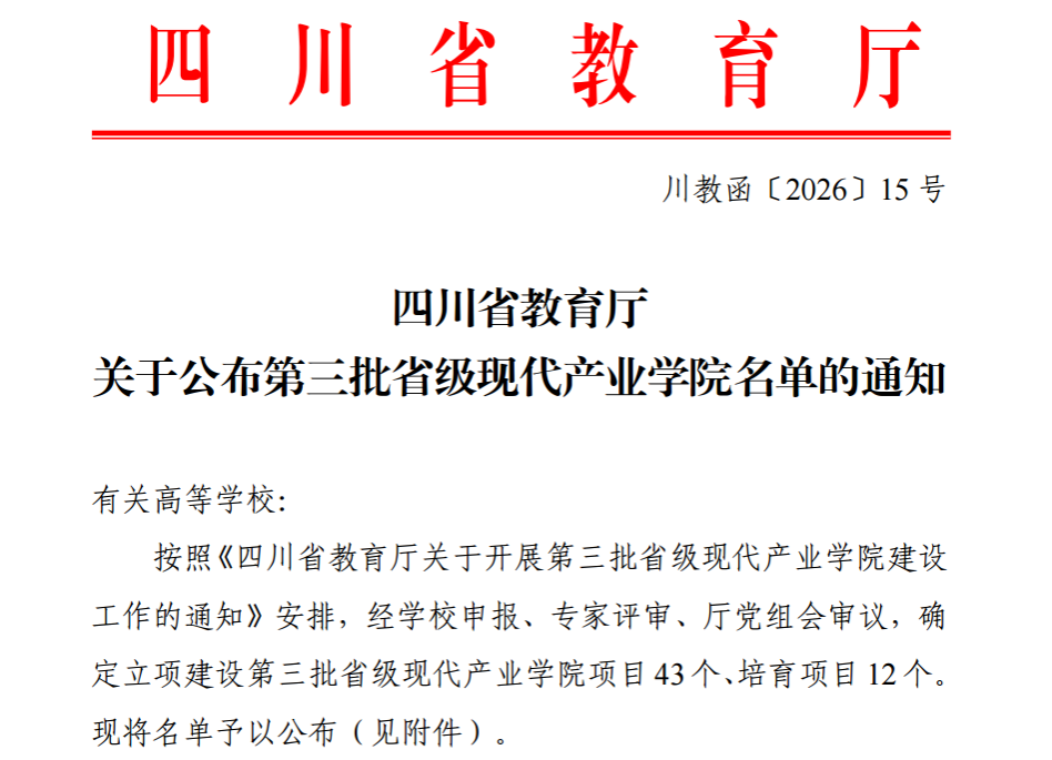 本网讯(文图/伏秦超)近日,四川省教育厅公布第三批省级现代产业学院名单,我校“森林食品现代产业学院”成功获批,标志着我校在深化产教融合、服务区域产业高质量发展方面取得关键突破。