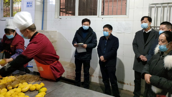 王国强一行深入我校百果苑食堂,查看了后厨操作间、售卖间、食材库房和“五防”措施等,了解食堂加工、制作、售卖全流程,并重点检查了留样管理、餐具清洗消毒、食品添加剂的使用保管等关键环节。
