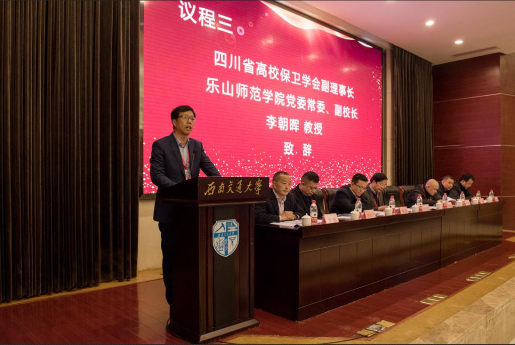 会上,李朝晖代表学会向出席会议的四川省教育厅、四川省国家安全厅、四川省公安厅各位领导表示热烈的欢迎,向承办和组织本次会议的西南交通大学、电子科技大学表示衷心的感谢,向长期坚守在高校安全稳定工作站线的兄弟院校领导、同仁们表示崇高的敬意。他表示,学会自1991年成立以来,始终把维护高校稳定、为立德树人创设安全环境作为自己的初心和使命,团结带领全省高校与时俱进谋稳定、真抓实干保平安;紧密配合教育行政和安全主管部门,积极宣传贯彻国家总体安全观、努力打造平安和谐校园,探索出一套多形式、多层次的高校安保人员培训体系,对提升高校校园安全管理水平,保障师生生命财产安全,全面推动高校事业发展起到了积极作用。