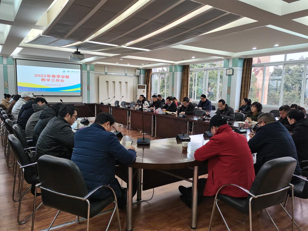 本网讯 (文/肖露欣、图/代丽)2月19日上午,学校在弘毅楼第一会议室召开2022年春季教学工作会。会议由党委常委、副校长汪天飞主持,各教学院院长,分管教学工作副院长,质量监控处、信息技术与实验保障处、教师教育学院、创新创业学院、继续教育学院、教学部等部门负责人参加了会议。