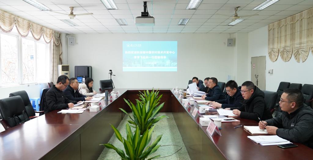 本网讯(文/唐书怡 图/孟繁增)2022年2月24日,科技部中国农村技术开发中心园区与地方科技处处长、乐山市政府党组成员、副秘书长李宇飞,乐山市科技局党组书记李鹏,乐山市科技局农业农村科科长、农业科技园区管委会办公室主任胡治群一行到我校调研指导科研工作。学校党委副书记、校长刘进,副校长李方裕热情接待了李宇飞一行。