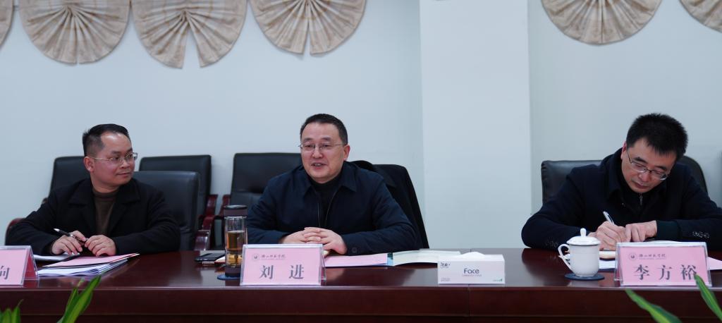 在弘毅楼207会议室,学校党委副书记、校长刘进对李宇飞一行的到来表示热烈欢迎,代表学校对乐山市委市政府、市科技局长期以来对学校的关心支持表示感谢。刘进校长向各位嘉宾汇报了学校硕士点建设情况以及“1329”总体发展思路,李方裕副校长汇报了学校科技工作概况、学校学科布局及建设情况。双方进行了友好交流,都表示要积极加强合作,在全面建设社会主义现代化乐山的进程中发挥更大的作用。
