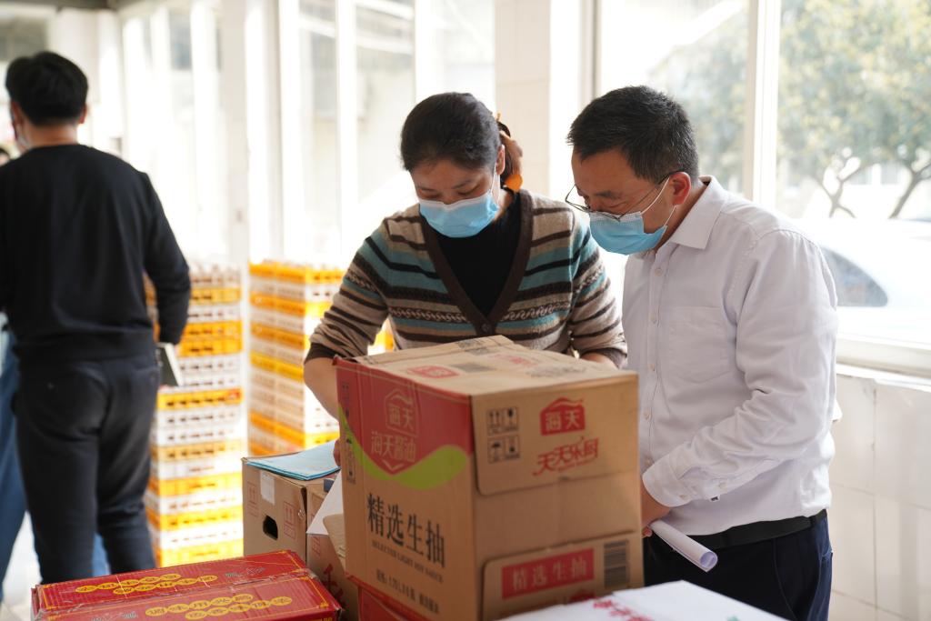 本网讯(文图/梁晨)3月11日,党委书记胡丹,党委副书记、校长刘进,党委常委、副校长李朝晖一行深入前校门门岗、武珈山快递站、百果苑快递站、武珈山食堂配送中心、校内集中隔离点、图书馆等疫情防控关键岗位,检查校门管控与安检、食堂物资储备、冷链食品管理、校内快递消杀与管理等情况。