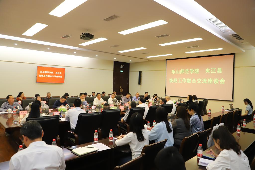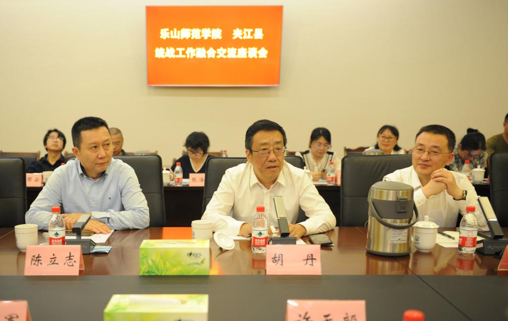 在座谈交流中,许天毅介绍了夹江县基本情况后,就县校双方统战融合提出了看法。胡丹、刘进就以统战融合为起点,发挥学校人才智力优势,落实校地合作事宜,助推夹江经济社会发展提出了建议。陈立志在讲话中指出,一是双方统战部门要同心共进、同心向前,引领党外人士做党的“好参谋、好帮手、好同事”,共同开展高质量的建言资政、重点课题调研和理论政策研究创新。二是要画好同心圆,寻找最大公约数。持续深化党史学习教育和主题教育活动,加强思想政治引领。希望下一步双方加强合作,在课题研究、实践创新、建言献策等方面找准着力点,以丰硕的成果积极推动县校统战融合创新。