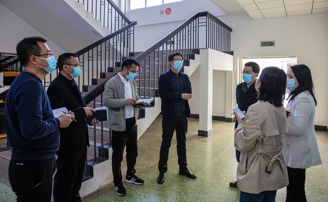 本网讯(文图/ 陈东阳 孟繁增)4月2日下午,校党委常委、副校长、疫情防控领导小组常务副组长李朝晖率队现场检查校园疫情防控工作,学校疫情防控工作领导小组办公室、校园安全管控专班、疫情防控处置专班、物资保障专班、督查专班等相关负责同志参加检查。