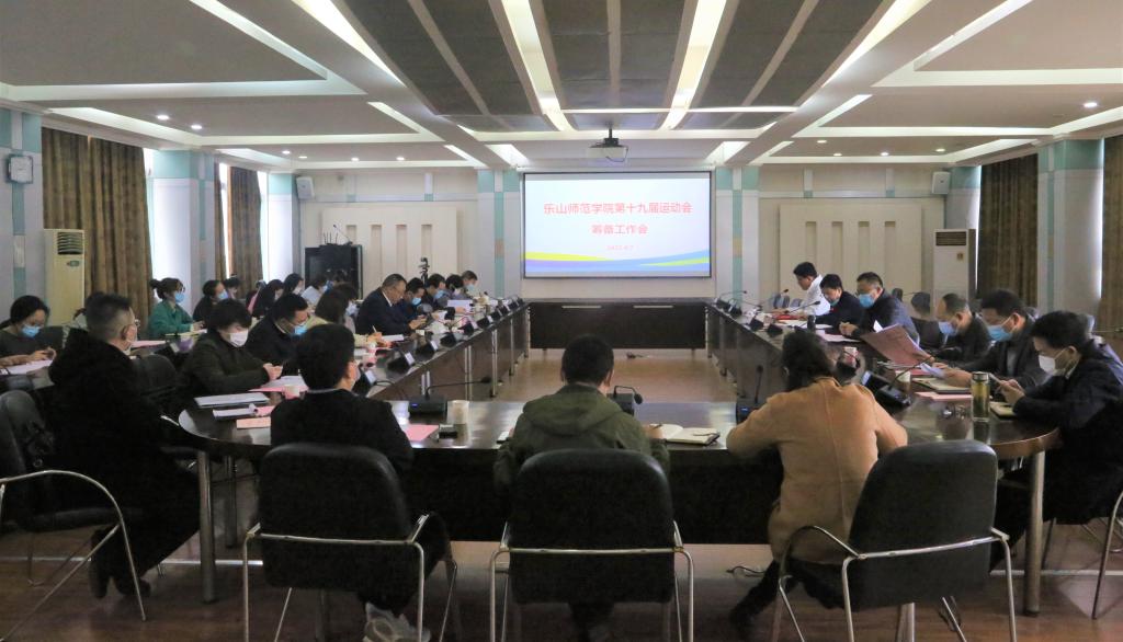 本网讯(文、图/裴庚)为确保乐山师范学院第十九届运动会圆满完成,丰富学校校园文化生活,学校于2022年4月7日在弘毅楼第一会议室召开了运动会筹备工作会,校党委常委、副校长李朝晖、相关职能部门领导、各教学院副书记参与了此次会议,会议由体育学院院长张峰主持。