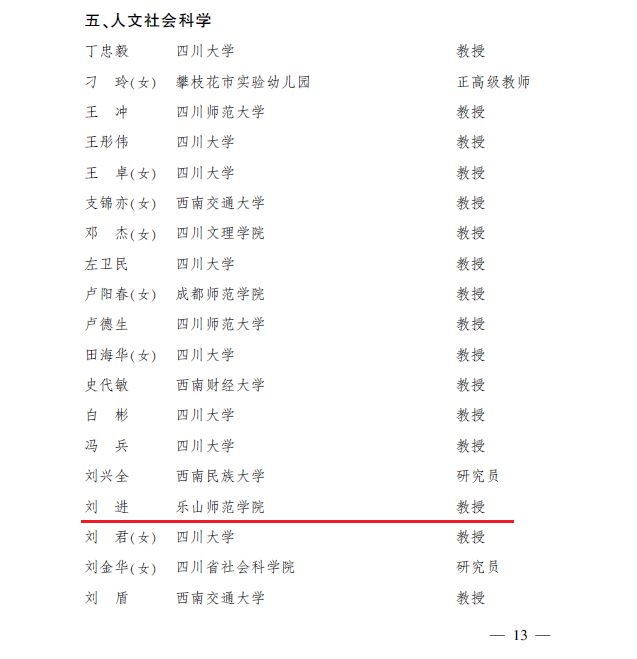 本网讯(文/聂丽)近日,四川省人民政府下发了《关于印发第十四批四川省学术和技术带头人的通知》(川府发[2023] 13号),全省320名同志被批准为第十四批四川省学术和技术带头人。我校刘进教授再次入选四川省学术和技术带头人。