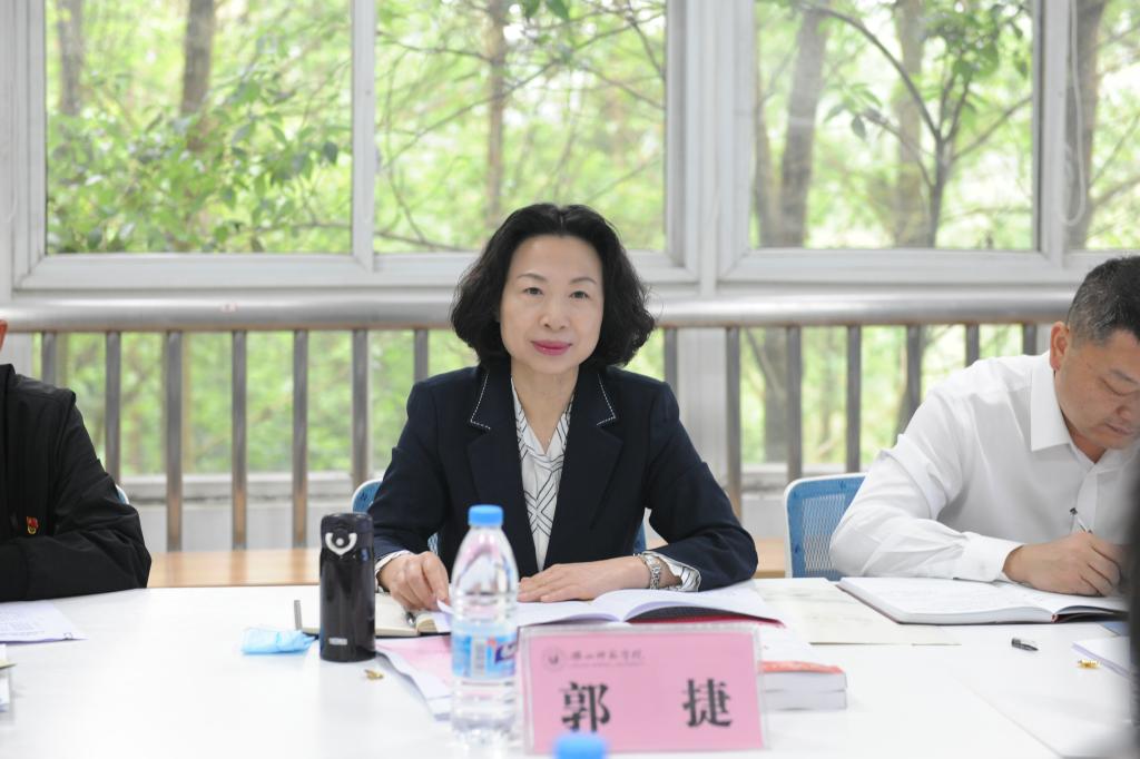 胡丹对郭捷来校调研指导表示欢迎,对市委和市委统战部长期以来关心支持学校统一战线工作表示衷心感谢。他围绕学校统一战线工作,介绍了学校党外知识分子规模结构、民主党派与统战团体设置、党外代表人士使用安排等情况。他指出,学校党委高度重视发挥统一战线的重要法宝作用,认真落实《条例》要求,扎实做好新时代学校统战工作。一是加强思想政治引领力建设,通过思想教育、阵地建设、统战研究,不断强化党外知识分子的政治判断力、政治领悟力与政治执行力。二是加强党对统战组织领导力建设,通过深化制度建设夯实机制基础,深化组织建设夯实工作基础,深化人才建设夯实队伍基础。三是加强服务高质量发展能力建设,学校出台了一系列激励政策文件,搭建了校内外建言献策平台,打造了“书香统战”等六个特色品牌,不断提高学校统战工作质量与水平。他还就党外代表人士政治安排的支持、进一步深化市校统战合作提出了具体建议。