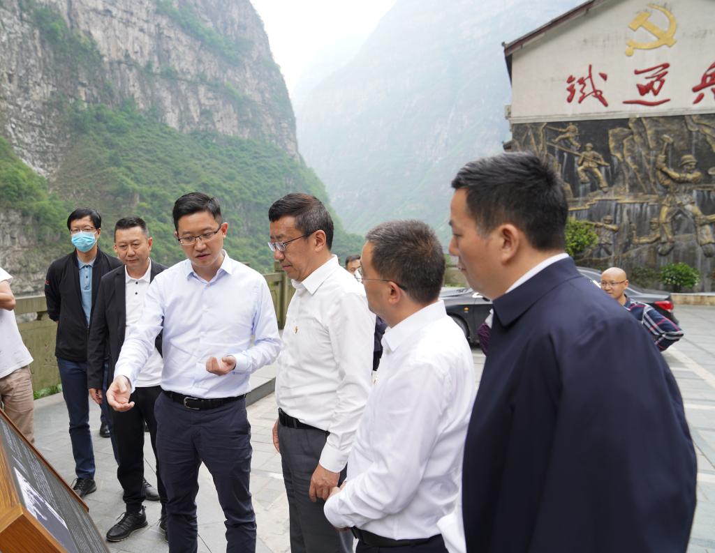 胡丹、刘进一行在金口河区委书记魏端,区人大常委会主任陈新,区政协主席孙建,区委常委、常务副区长张宇,区委常委、组织部部长师玉容等的陪同下走进铁道兵博物馆,缅怀为成昆铁路建设牺牲的英烈,学习老铁道兵艰苦奋斗和奋勇拼搏精神,进一步坚定党员干部的理想信念,提高党性修养,传承优良传统,践行初心使命。通过讲解员现场讲解和参观,大家了解到:作为四川省爱国主义、国防教育和党史教育基地的铁道兵博物馆座落在金口河大峡谷中,由主展馆、成昆铁路纪念碑、游客中心3个部分组成,主展馆分为“领导关怀、鼓舞人心”“枪林弹雨、建功沙场”“开山筑路、功勋卓著”“永志不忘、继往开来”等四个版块,展厅内部还原了当年施工隧道、工地、窝棚等场景,众多珍藏文物再现了铁道兵光辉历程。
