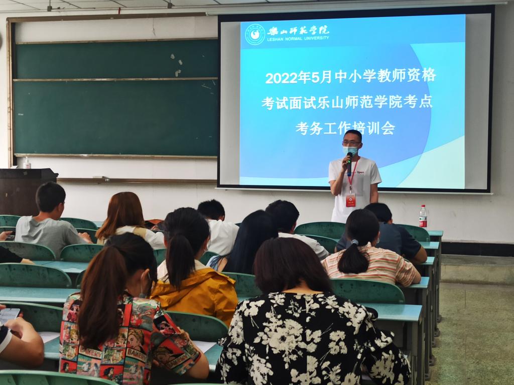 乐山师范学院考点严格按照教育部和四川省教育考试院有关规定组织实施考试,共接纳来自学前、小学、初中、高中4个学段16个学科的考生2000余人,设置面试考室47个、临时医疗室1个、备用考室2个、发热考室2个等,准备电脑、打印机300余套、教具若干,安排面试考官141人、相关工作人员及学生助理共近300人。