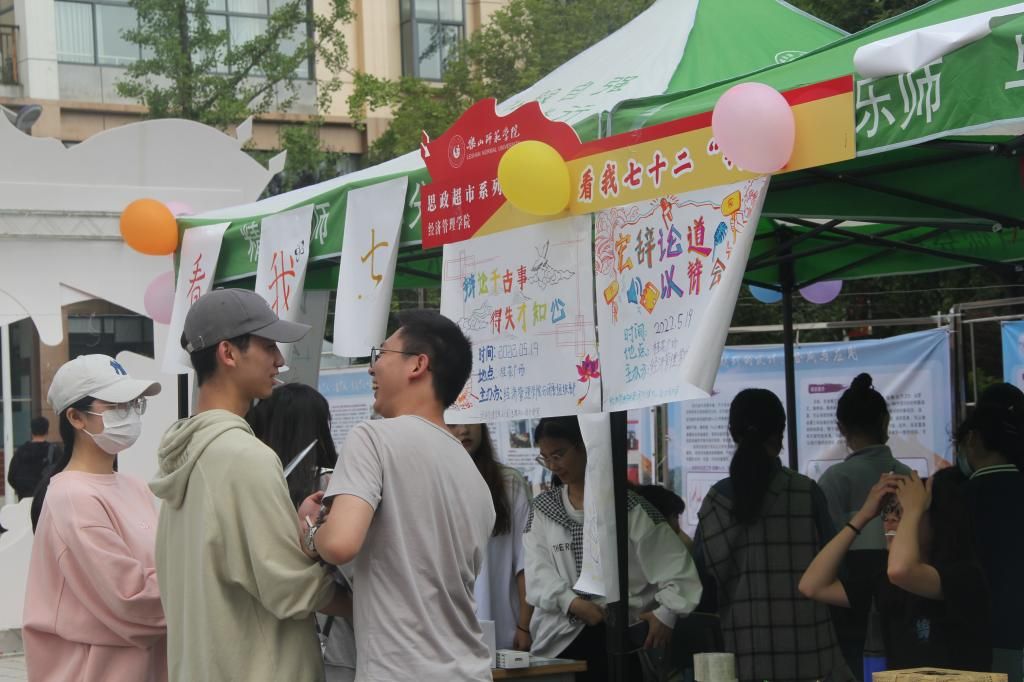 本网讯(文/赵玉仙 图/三江潮))为深入贯彻习近平总书记关于教育的重要论述和全国教育大会精神、全国高校思想政治工作会议精神,全面落实立德树人根本任务,切实把思想政治教育贯穿人才培养体系,全面推进思政课程与课程思政建设,学校于5月13日-20日在全校范围内开展“思政课程与课程思政建设推进周”活动,5月19日下午,主题为“喜迎二十大、永远跟党走、奋进新征程”的“思政超市”精品项目在桂花广场展演。