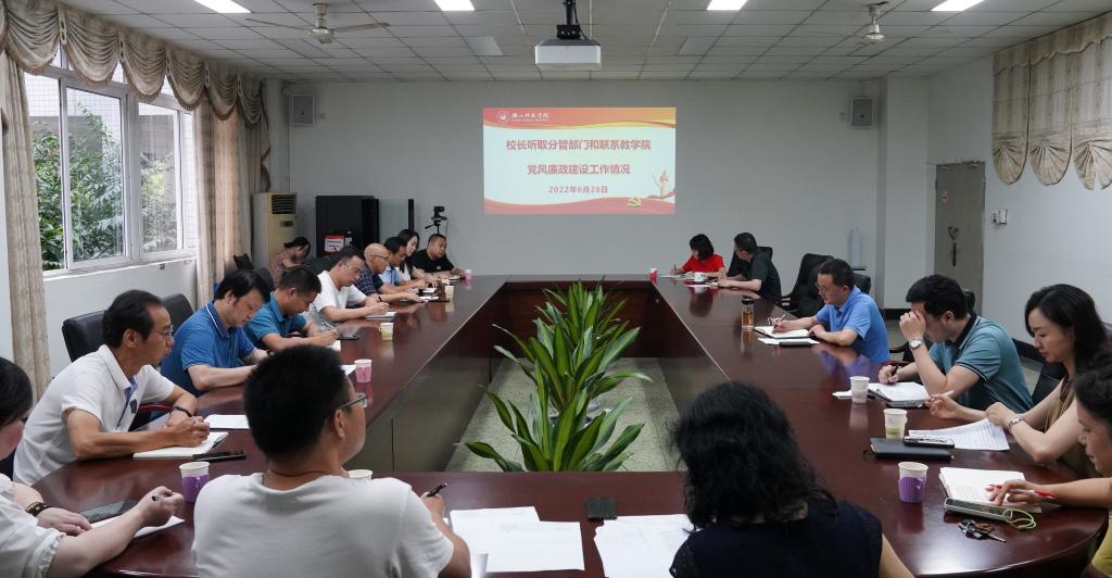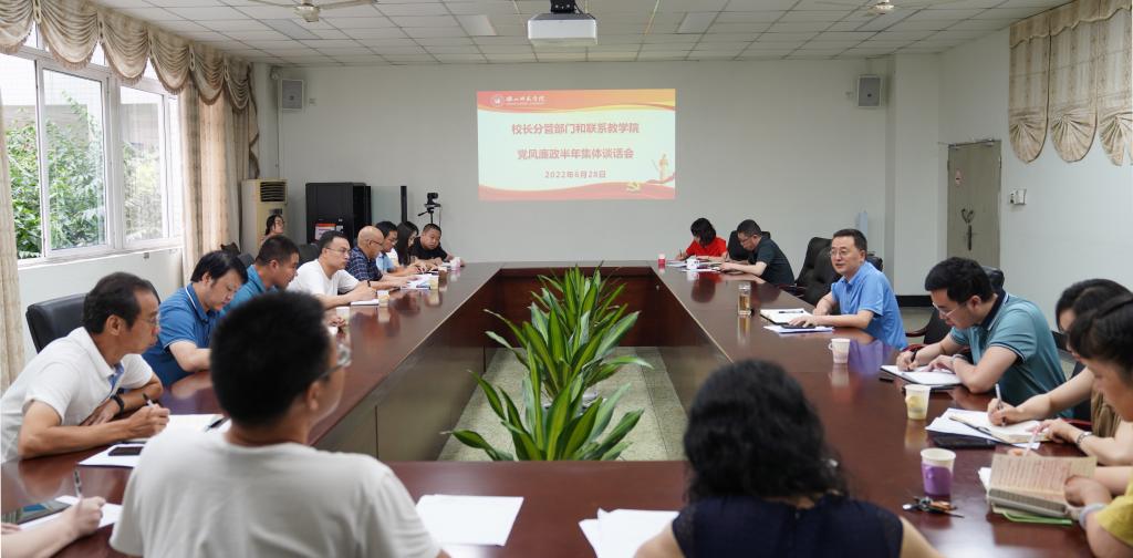 本网讯(文、图/孟繁增、刘珠)6月28日,党委副书记、校长刘进在弘毅楼207听取分管部门和联系教学院党风廉政工作汇报并开展集体谈话。文学与新闻学院、外国语学院、数理学院、党政办公室、审计处等全体班子成员参加会议。