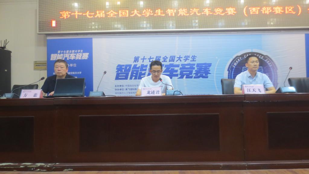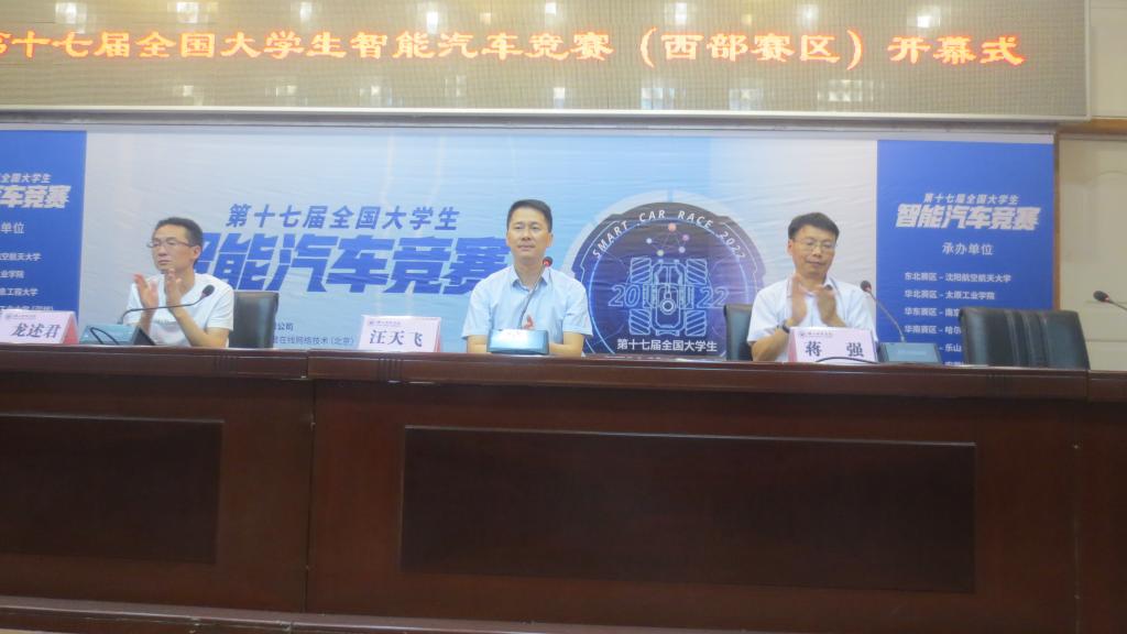 本网讯(文/雷雄锴,图/唐明可)7月22日,由中国自动化学会主办,乐山师范学院承办的第十七届全国大学生智能汽车竞赛(西部赛)开幕式在乐山师范学院隆重举行。出席开幕式的有教育部高等学校自动化类专业教学指导委员会委员、陆军勤务学院涂亚庆,乐山师范学院党委常委副校长汪天飞,乐山师范学院党委委员教学部部长龙述君,乐山师范学院党委委员电子信息与人工智能学院党委书记蒋强,乐山师范学院电子信息与人工智能学院党委副书记方忠,开幕式由蒋强主持。